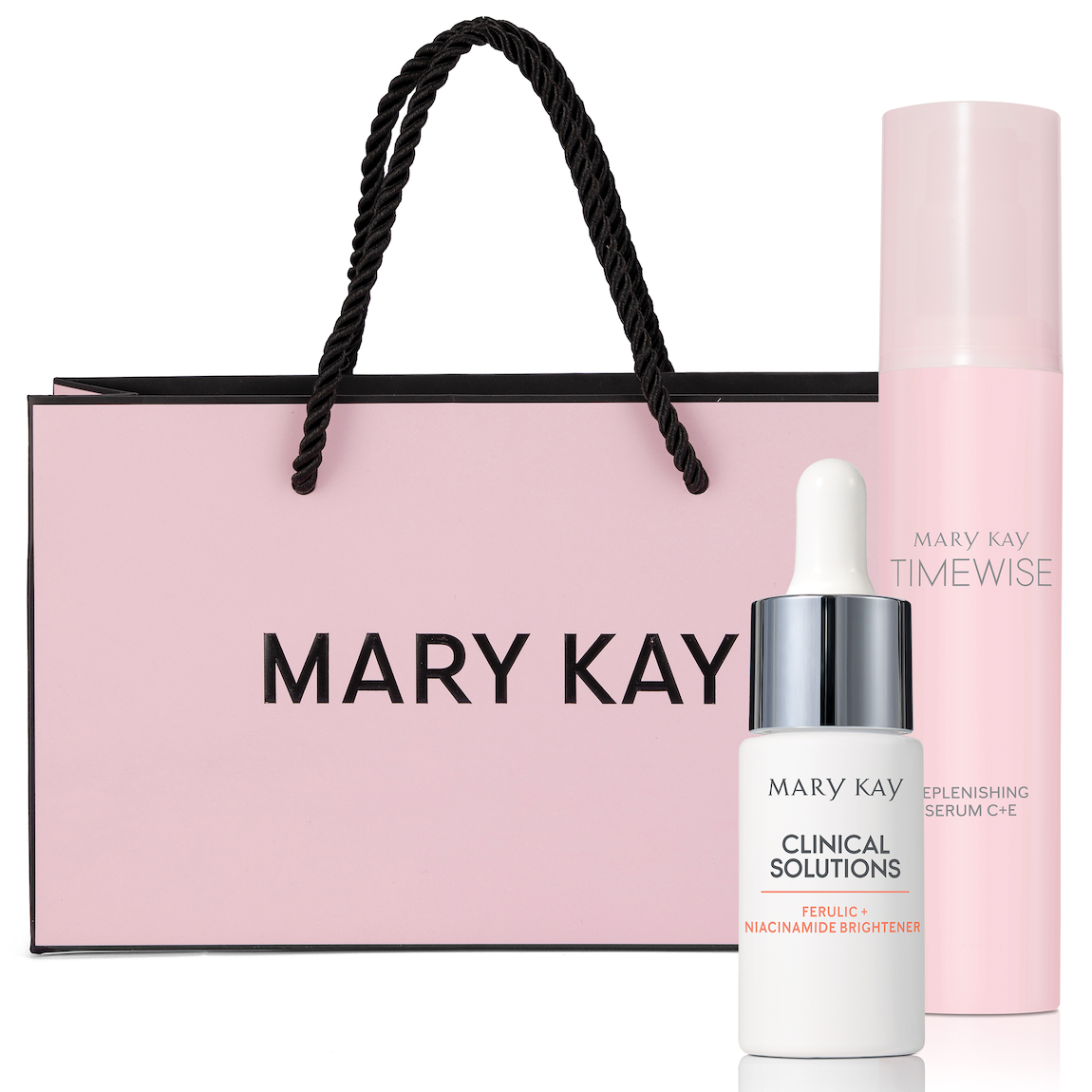 Сыворотка-концентрат Clinical Solutions™ для отбеливания и сияния «Феруловая кислота + Ниацинамид» в сочетании с Регенерирующей сывороткой TimeWise® «С+E» выведут ваш уход за кожей на новый уровень. Эти клинически проверенные осветляющие ингредиенты помогут достичь ровного и сияющего цвета лица.